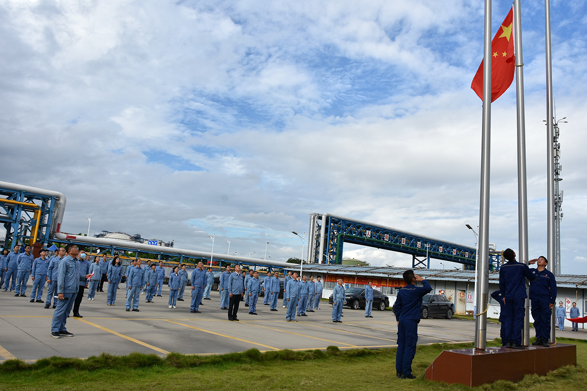 鮮艷的五星紅旗在雄壯的國(guó)歌聲中緩緩升起,迎風(fēng)飄揚(yáng)。全體黨員飽含深情地面向國(guó)旗,齊唱國(guó)歌,濃濃的愛(ài)黨愛(ài)國(guó)情懷油然而生。