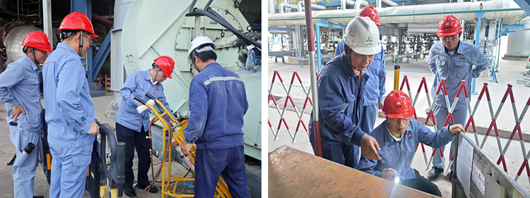 檢修前,股份公司、科技公司領導帶隊到一期廠區開展停產檢修專項安全檢查,壓緊壓實各方安全責任,排查風險消除隱患,并采用“四不兩直”方式到檢修現場重點檢查臨時用電、起重吊裝、個人防護、作業規范執行及安全措施落實情況等。