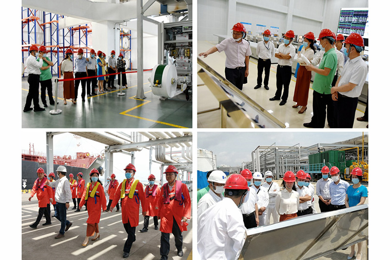 巨正源公司黨總支書記、董事長石新琦,副董事長、總裁王立貴,副總裁黃鐵民和李漢初等人陪同外部董事參觀了巨正源科技公司聚丙烯項目生產現場、盛源油庫、鴻源碼頭等,邊參觀邊介紹項目情況,深入了解了聚丙烯一期項目生產過程、二期項目建設情況,以及油庫和碼頭的運作情況。