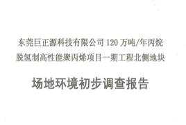 東莞巨正源科技有限公司120萬噸/年丙烷脫氫制高性能聚丙烯項目一期工程北側(cè)地塊場地環(huán)境初步調(diào)查報告