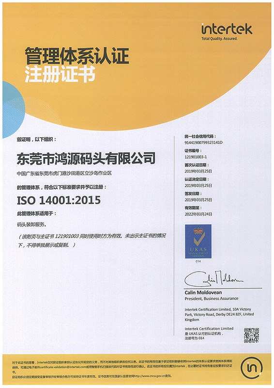 ISO-14001環(huán)境管理體系證書