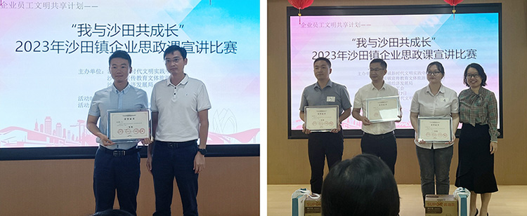 11月7日下午,“我與沙田共成長”企業思政課宣講比賽在沙田鎮新時代文明實踐中心舉行。巨正源公司趙坤鵬、齊文彬兩位選手用真摯的情感表達和真實的感人事跡講述了與企業同成長、共進步的故事,引起觀眾心靈共鳴,贏得評委高度評價,分別榮獲比賽一等獎和三等獎。