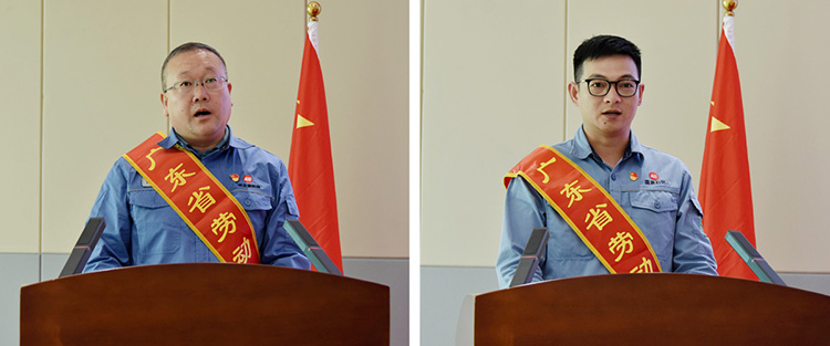 會議宣讀了對榮獲“廣東省勞動模范”的許多琦、張東波同志的表彰決定,對他們辛勤付出和工作成效予以肯定。公司領導為許多琦、張東波同志頒發獎金,并為許多琦、張東波“勞模和工匠人才創新工作室”揭牌。